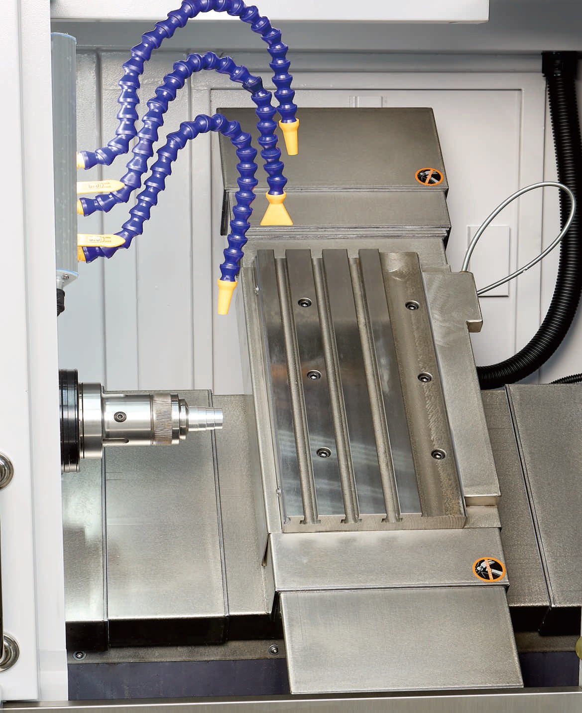 Gli accessori opzionali includono una torretta, una testa flycuter e una testa motrice. La testa motrice può essere ruotata, consentendo angoli di rotazione arbitrari da 0° a 90°, consentendo la lavorazione integrata di fresatura e tornitura.