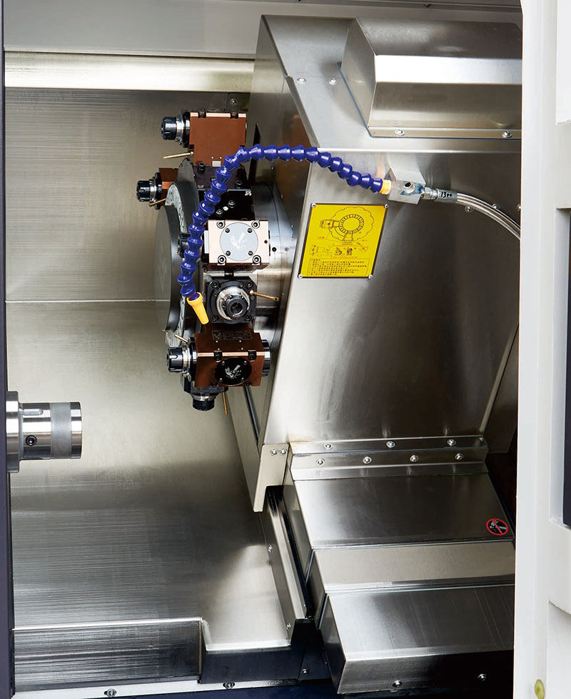 Inoltre, l'attrezzatura presenta anche questi punti salienti pratici: la testa motrice a 0° può raggiungere un funzionamento stabile di 8000 giri/min, la testa motrice a 90° ha una velocità di lavoro nominale di 6500 giri/min; il portautensile adotta un design di trasmissione del modulo senza ingranaggi, eliminando l'influenza della fonte di calore dalla radice, che può garantire efficacemente la precisione della lavorazione; sono integrate funzioni di fresatura e tornitura, che possono facilmente soddisfare le esigenze di lavorazione di materiali complessi come acciaio inossidabile, lega di titanio e acciaio al carbonio; Il sistema di rimozione dei trucioli adotta un design integrato lato + retro, modalità di installazione flessibile, può essere selezionato arbitrariamente in base alle condizioni di lavoro effettive.